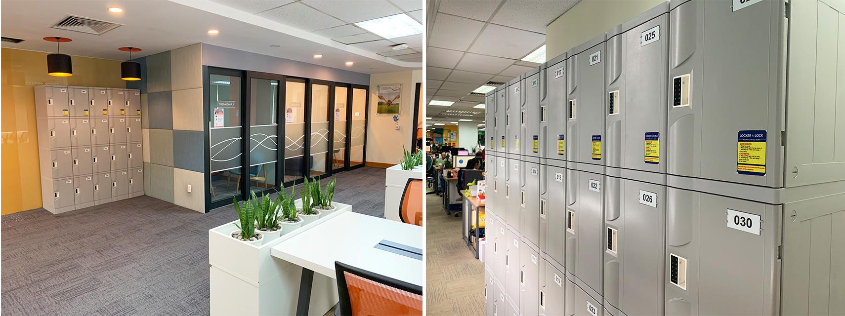 1 góc tủ locker ABS cho nhân viên tại văn phòng Prudential, quận 3, TP.HCM