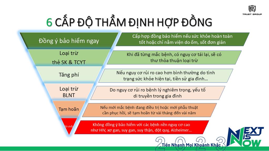 - File trình chiếu để trình bày 3 tầng tháp tài chính, 4 cách tính số tiền bảo hiểm đơn giản, 5 quyền lợi sản phẩm bổ trợ nên có để khách hàng hiểu về các quyền lợi, 6 cấp độ kết quả thẩm định để khách hàng hiểu cần có sức khỏe khi tham gia bảo hiểm và các kịch bản có thể xảy ra khi yêu cầu bảo hiểm.